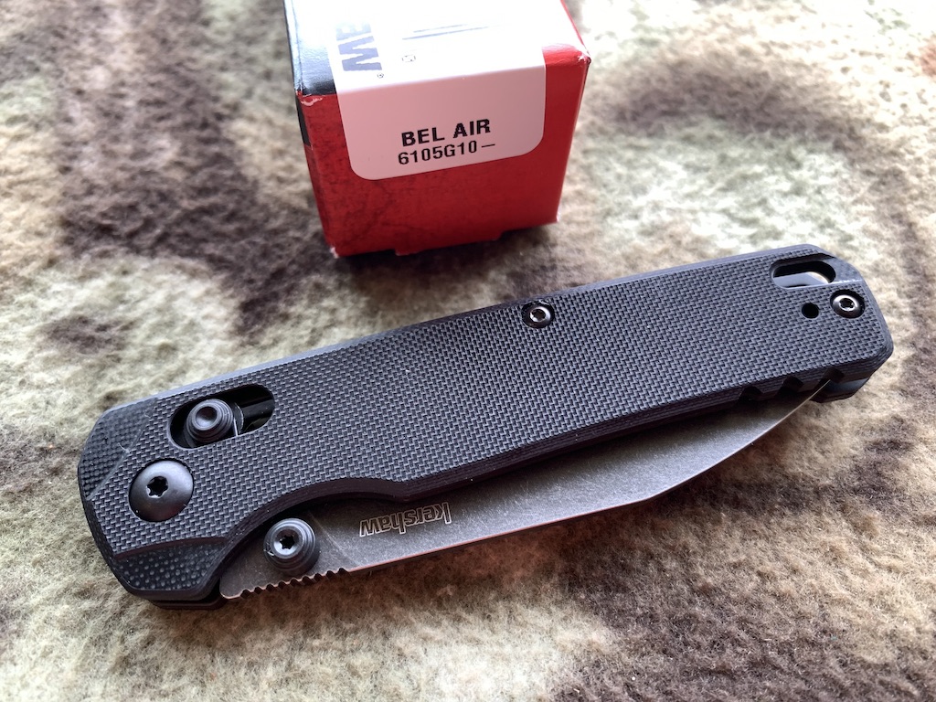 - Made in USA, black Bel Air; smooth and EDC-friendly design with Black G10 handle